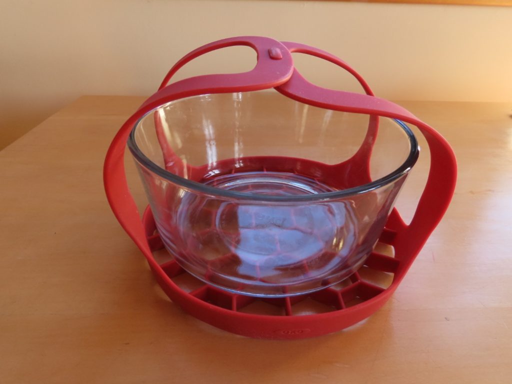 If you do not have a silicone sling for Instant Pot, prepare one with a strip aluminum foil. Overlap two 2-foot lengths of aluminum foil, fold in half lengthwise. Place the cooking mold in the center just before placing it in the inner pot of the Instant Pot. Fold the ends several times to form handles. Lift the mold with these handles to put it into the Instant Pot.