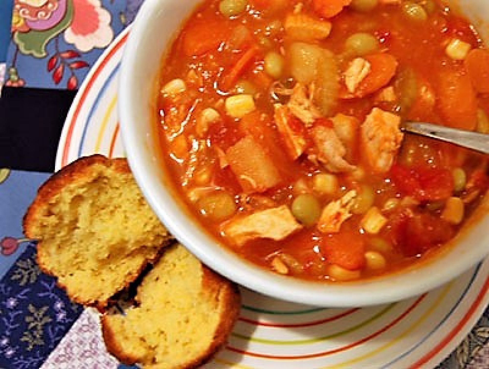 A typical dish of Georgia State prepared with chicken, pork, ham, corn and white beans,