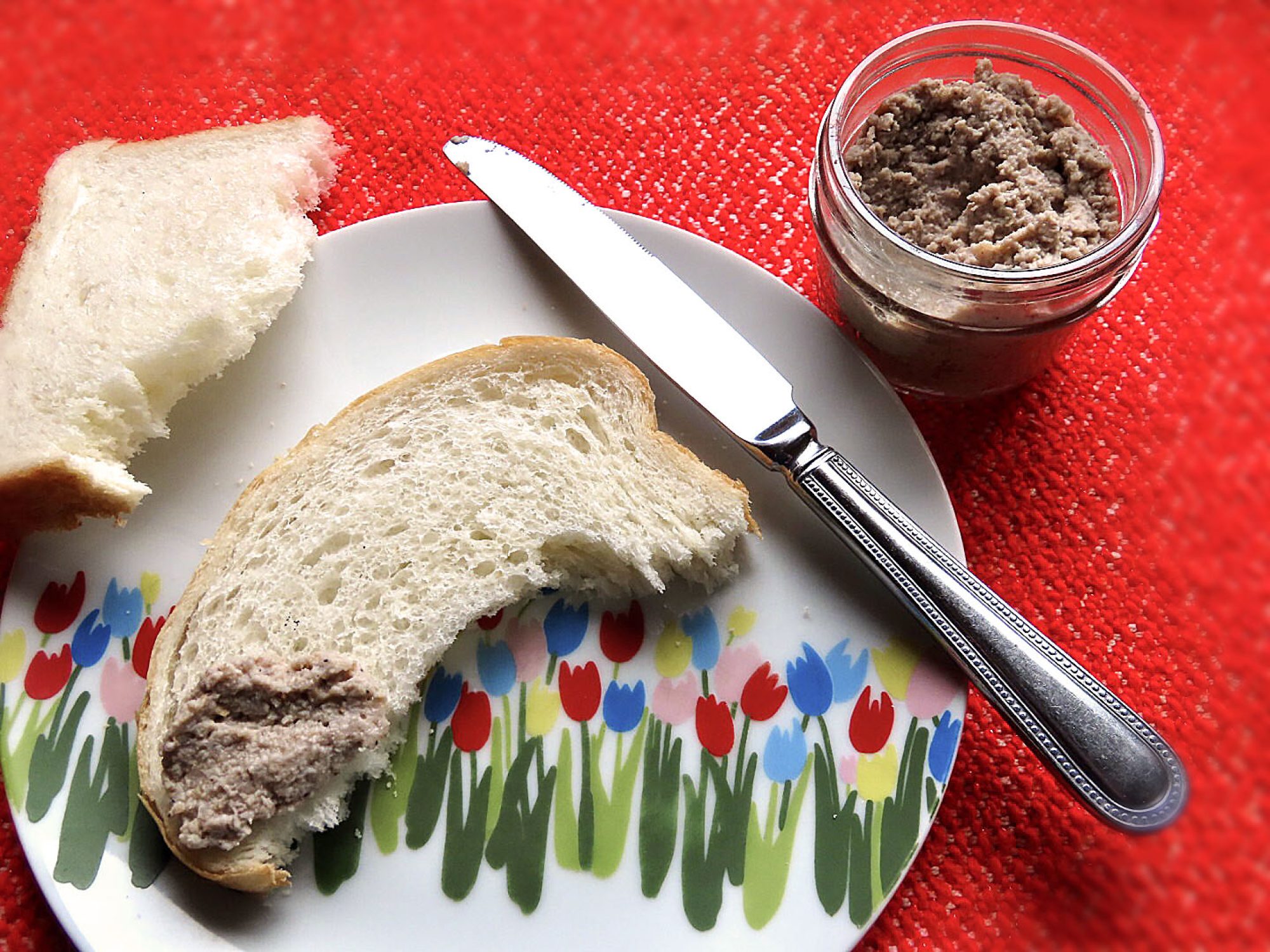 Blend the pâté a few seconds with an immersion hand blender just enough to bind the meat with the cooking juices. Add the breadcrumbs and mix with a wooden spoon.