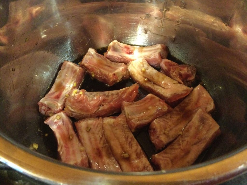 Remettre le bouillon dans le bol de l’Instant Pot, sélectionner « sauté », mélanger la fécule et l’eau dans un petit bol et incorporer au bouillon. Cuire quelques minutes jusqu’à qu’une sauce se forme, ajouter les côtes, remuer pour les enrober et réchauffer quelques minutes.