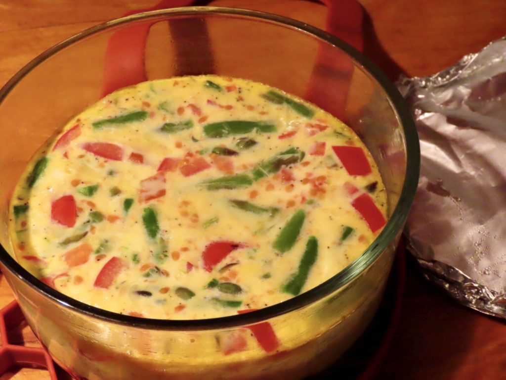 Cette Frittata est délicieuse préparée avec des asperges ou des épinards.